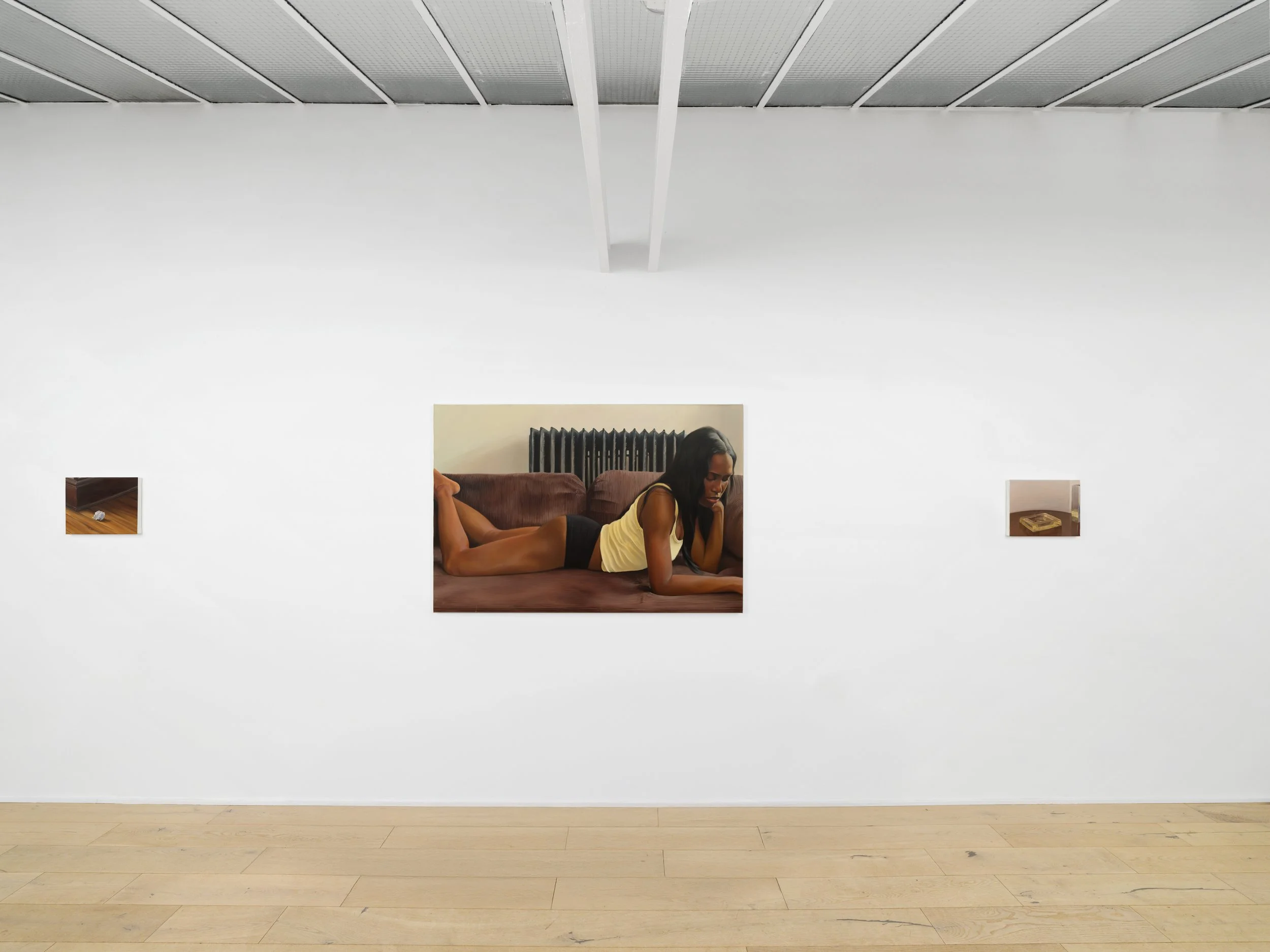 A waiting room is a liminal space; a state of transition; a physical and metaphorical point where one pauses before moving to the next. Across eleven new works, Andy’s “Waiting Room” unfolds within this threshold. Considering the domestic spaces we occupy and the cogitations that occupy us, she visualizes interior scenes where women are intimately suspended in thought, both alone and with one another. Closely highlighting body language and gazes transfixed beyond the frame, we see the figures present in the paintings, yet seemingly elsewhere internally—their postures suggesting rumination. With routine objects, such as papers, chairs, and ashtrays, mindfully positioned alongside the body as grounding elements, Andy’s works reflect how and where women take space to sit with themselves, while also asking what may be revealed in their stillness.
